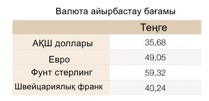 \(\displaystyle 2014\)жылдың \(\displaystyle 31\) наурызына валюта айырбастаудың келесі бағамы бар: