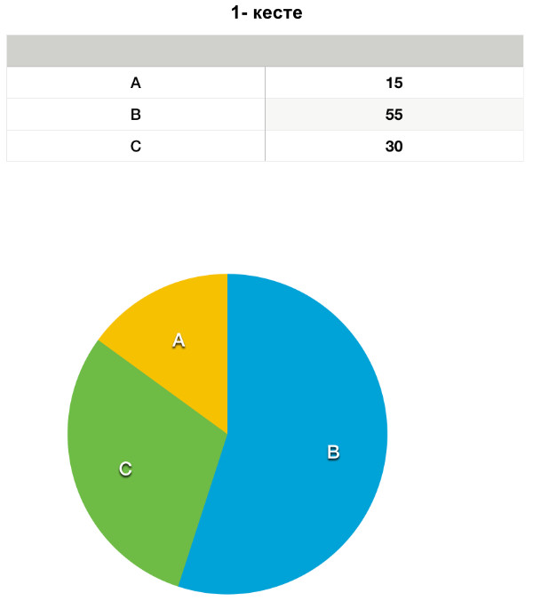 Бірінші кесте келесі дөңгелек диаграммаға сәйкес келеді