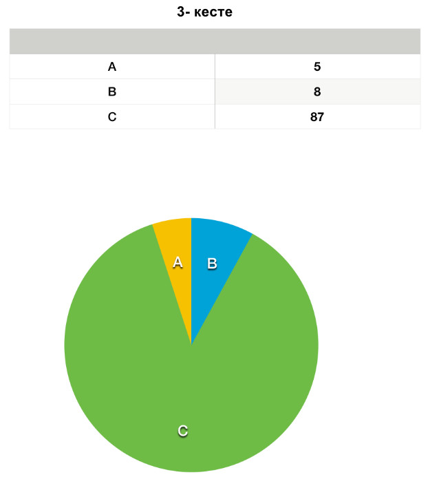 Үшінші кесте келесі дөңгелек диаграммаға сәйкес келеді