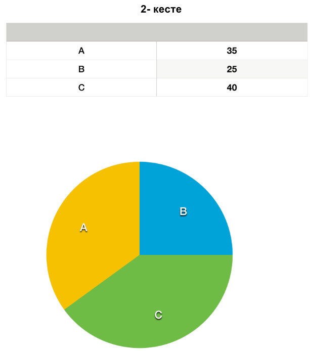 Екінші кесте келесі дөңгелек диаграммаға сәйкес келеді