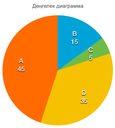 Берілген дөңгелек диаграмма негізінде A, B, C және D шамалары арасындағы қатынасты анықтаңыз