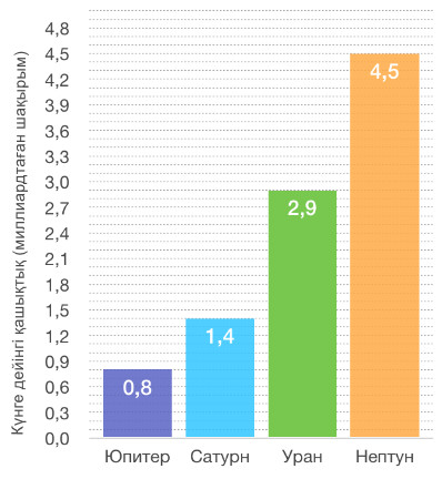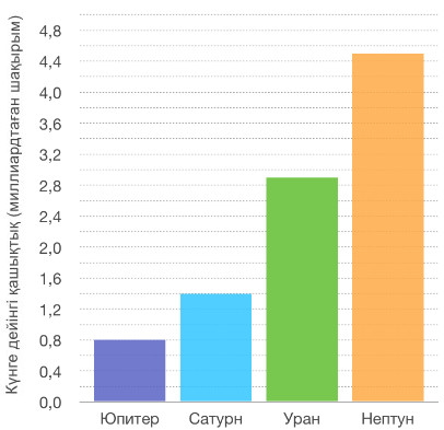 Бағаналық диаграммада Күн мен Күн жүйесінің кейбір планеталары арасындағы қашықтық туралы мәліметтер келтірілген.