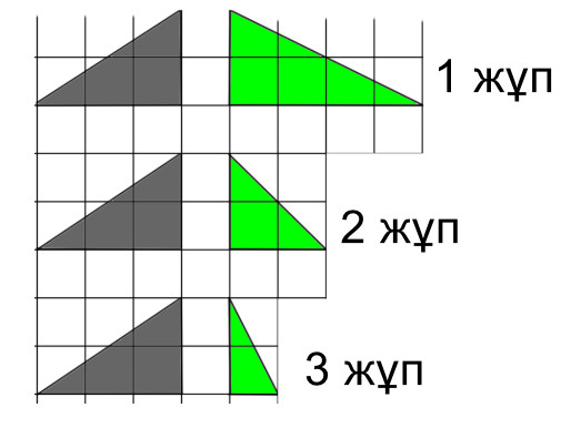 Аудандарының қосындысы берілген үшбұрыштың ауданына тең болатын үшбұрыш жұбын таңдаңыз (аудан бірлігі үшін бір шаршы тордың ауданын есептей отырып: 1 шаршы бірлік = 1 тор):