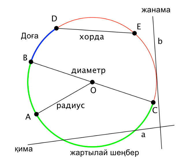 Хорда - шеңбердің екі нүктесін қосатын қима кесіндісі (хорда - бұл шеңбердің екі нүктесін қосатын кесінді).