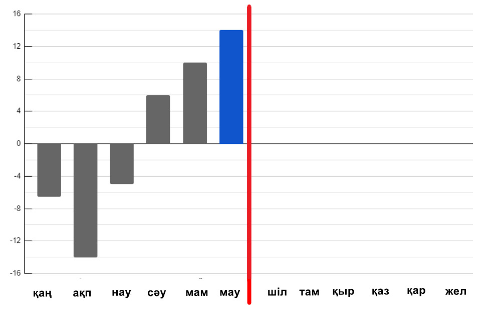 Маусым және шілде айларына сәйкес бағандар арасында тік түзу сызамыз: