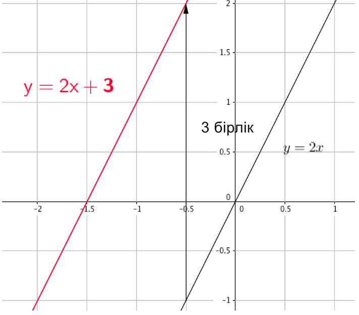 Бізге \(\displaystyle y=3x{\small } \) функциясының графигі берілген . Біз оны \(\displaystyle \color{blue}{ 3}\) бірлікке жоғары көтереміз.