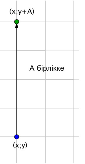 Егер координаттары \(\displaystyle (x\,; y\,)\) кейбір нүктелерді \(\displaystyle \rm A\) бірліктеріне жоғары көтерсе, онда координаттары \(\displaystyle (x\,; y+{\rm A}\,){\small }\) нүктені аламыз :