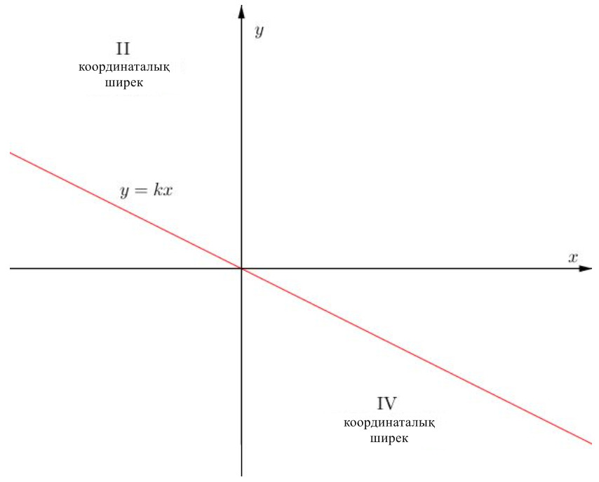 \(\displaystyle y=kx \) түзуі \(\displaystyle \rm II \) және \(\displaystyle \rm IV \) координаталық ширектерде орналасқан: