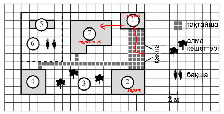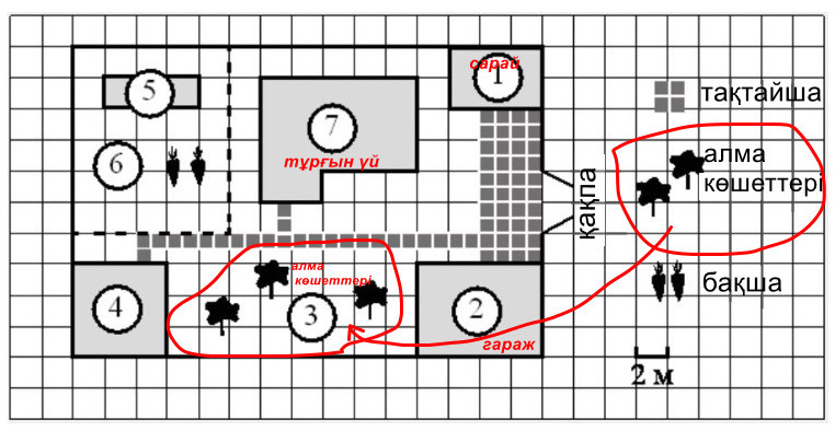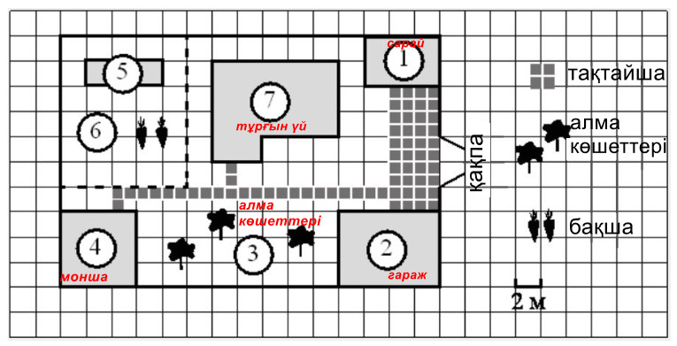 Демек, \(\displaystyle \red6\) санымен жоспарда көкөніс бақшасы белгіленген (бұл шартты белгілерге де сәйкес келеді).