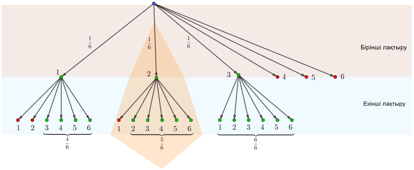 - \(\displaystyle B_{2}\) – бірінші лақтыруда \(\displaystyle 2{\small , }\)