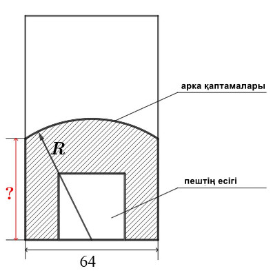 Арканың дөңгелектеу радиусы \(\displaystyle R\) белгілі және \(\displaystyle 68\) см тең. Қаптаманың ені сантиметрмен суретте көрсетілген. Қаптаманың биіктігін сантиметрмен табыңыз.