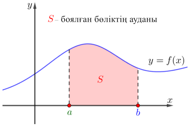 Егер \(\displaystyle f(x)\) үздіксіз функция және \(\displaystyle F(x)\) оның түрлендірілген болса, онда графиктің астындағы \(\displaystyle \color{red}{S}\) ауданы (қисық трапеция) формула бойынша есептеледі: