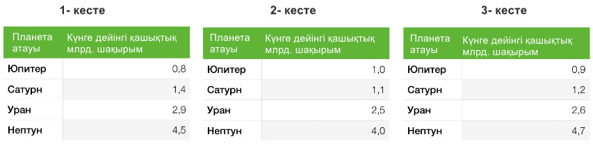 Табылған мәндер планеталардың әрқайсысынан күнге дейінгі сәйкес қашықтық болып табылады.