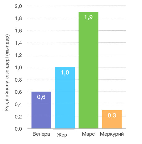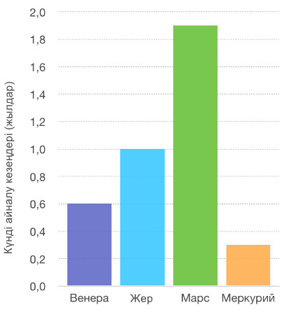 Бағаналы диаграммада Күн жүйесінің кейбір планеталарының Күнді айналу кезеңі туралы ақпарат берілген.