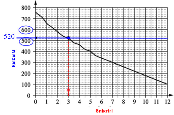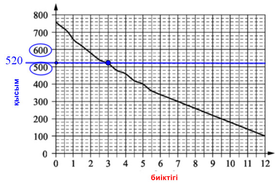 \(\displaystyle \color{blue}{520}\) нүктесі арқылы көлденең түзу сызамыз. Осы сызықпен графиктің барлық қиылысу нүктелері \(\displaystyle 520\) мм сынап бағанасы қысымына сәйкес келеді.