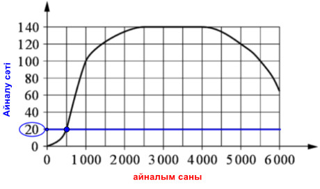 Шарттан автомобиль айналу сәті алғаш рет \(\displaystyle 20\) Н\(\displaystyle \cdot \)м жеткенде қозғала бастауы мүмкін. Осы сәттің мәніне сәйкес келетін қозғалтқыш айналымдарының санын табамыз. Осылайша, біз тапсырма сұрағына жауап береміз.
