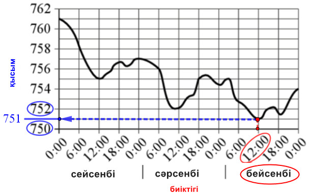 Осылайша, бейсенбі күндізгі сағат \(\displaystyle 12\) ішінде қысым \(\displaystyle 751\) мм сын. бағ. тең