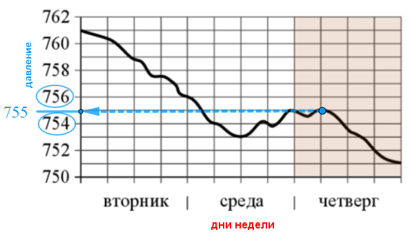 Видим, что она лежит в точности посередине между значениями \(\displaystyle 754\) и \(\displaystyle 756\) мм рт. ст.