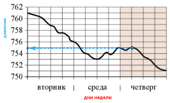 Таким образом, наибольшее значение атмосферного давления в четверг равно \(\displaystyle 755\) мм рт. ст.