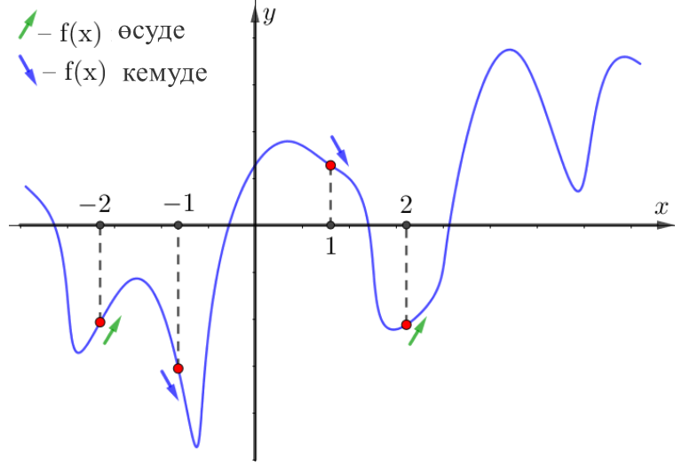 | \(\displaystyle -1, 1\) | \(\displaystyle f(x)\) кемуде | \(\displaystyle f^{\prime}(x)\le0\) |