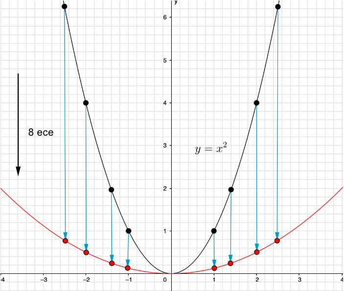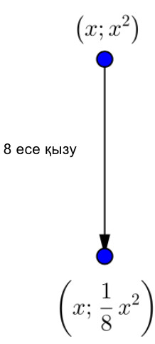 \(\displaystyle (x;\, x^2)\) түрінің бір нүктесін алып, оны \(\displaystyle \rm OY \) осі бойымен \(\displaystyle 8\) есе қысамыз, яғни ординатаның мәнін \(\displaystyle 8\) есе азайтамыз.
