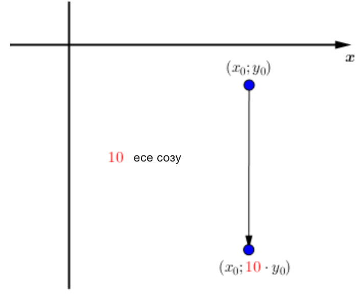 Яғни, \(\displaystyle (x_0;\, \color{red}{ 10}\cdot y_0)\) нүктесі \(\displaystyle (x_0;\,y_0)\) нүктесінен \(\displaystyle y_0 \) координатасын \(\displaystyle \color{red}{ k}=\color{red}{ 10}{\small }\) көбейтуарқылы алынған.
