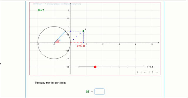 Құрылымы бойынша, көк нүктенің координатасы \(\displaystyle y\) шеңбердегі нүктенің координатасымен бірдей, яғни \(\displaystyle \sin(0{,}8)\) тең.