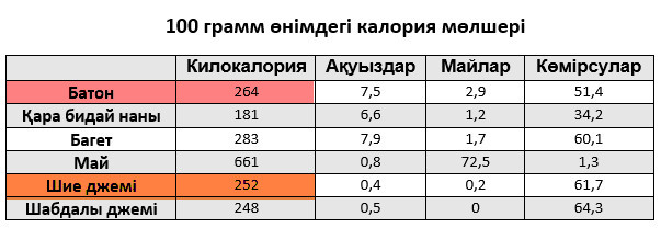 \(\displaystyle 100\) грамм шие джемінде\(\displaystyle 252\) ккал.бар.