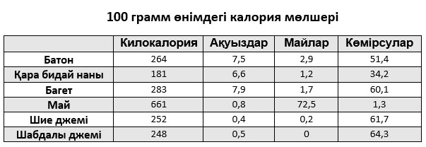 - \(\displaystyle 26\) грамм шие джемінен тұратын бутербродтың калория мөлшері қандай?