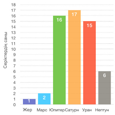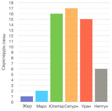 Бағаналы диаграммада Күн жүйесінің кейбір планеталарының табиғи серіктерінің саны туралы мәліметтер келтірілген.