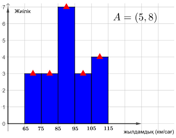 Аралықтардың әрқайсысы үшін тиісті баған биіктігін таңдағанда, мына гистограмманы аламыз: