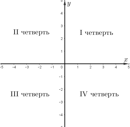 - \(\displaystyle y<0\) в третьей и четвёртой четверти.