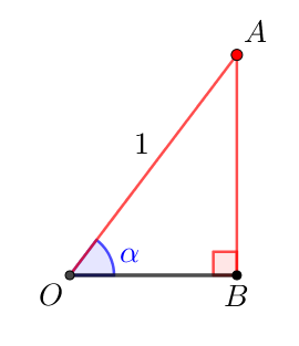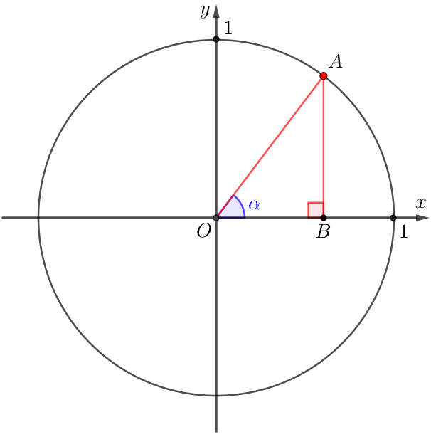 абсцисса точки \(\displaystyle A\) \(\displaystyle = OB=\cos(\color{blue}{\alpha}){\small.}\)