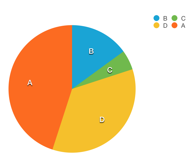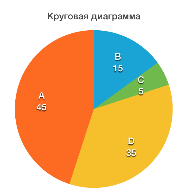 На основе данной круговой диаграммы определить соотношение между величинами A, B, C и D.