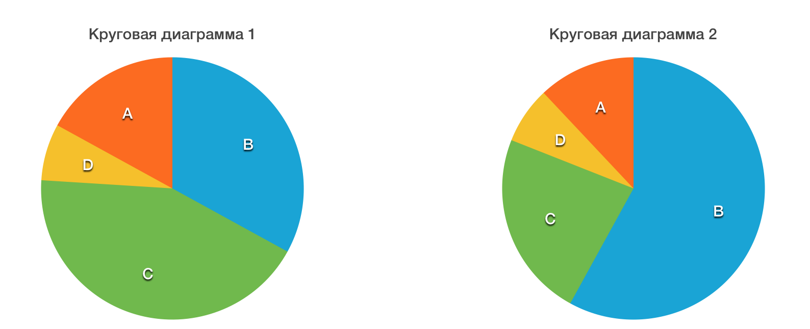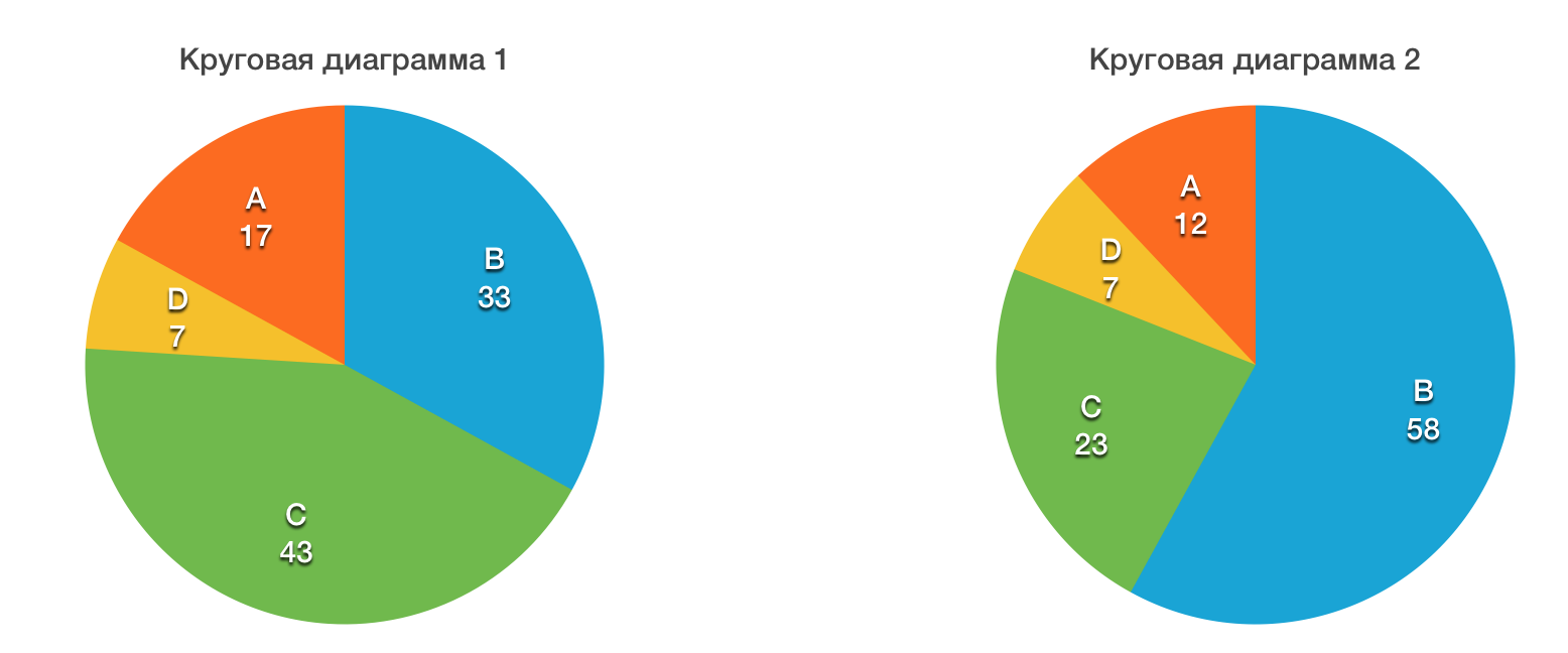 В данных круговых диаграммах имеет место следующие распределение долей: