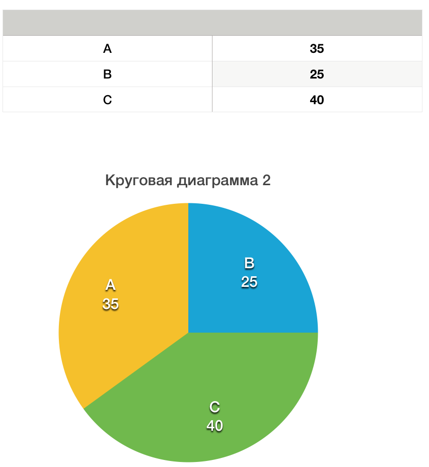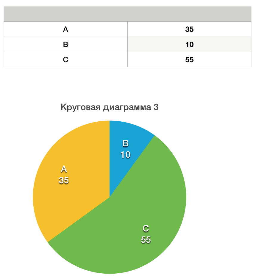 Таким образом, наша таблица соответствует третьей круговой диаграмме.