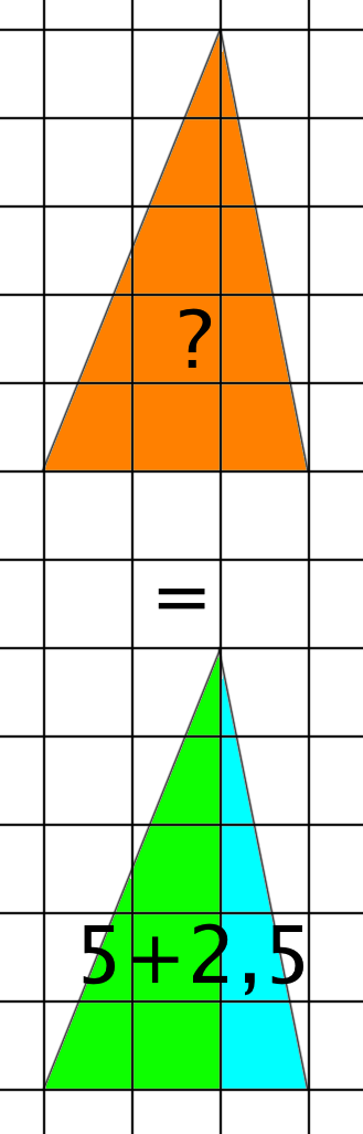Таким образом, площадь оранжевого треугольника равна \(\displaystyle 5+2,5=7,5\) мм2.