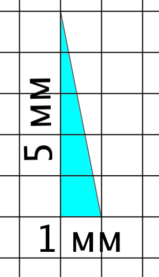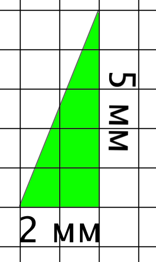 Площадь голубого треугольника равна \(\displaystyle \frac{1\cdot 5}{2}=2,5\) мм2.