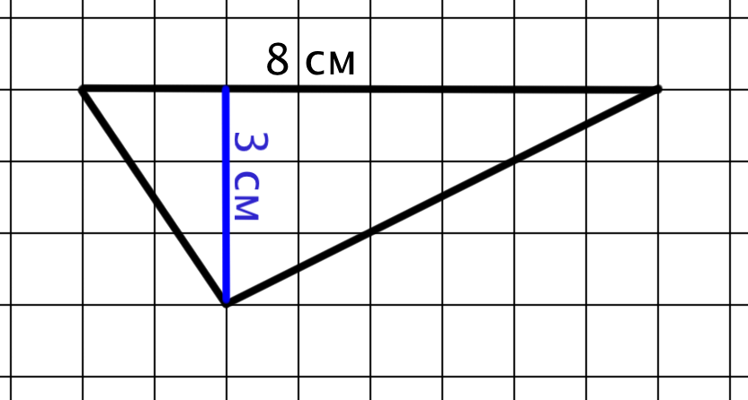 Найдите площадь треугольника, если его основание равно \(\displaystyle 8\) см, а высота - \(\displaystyle 3\) см.