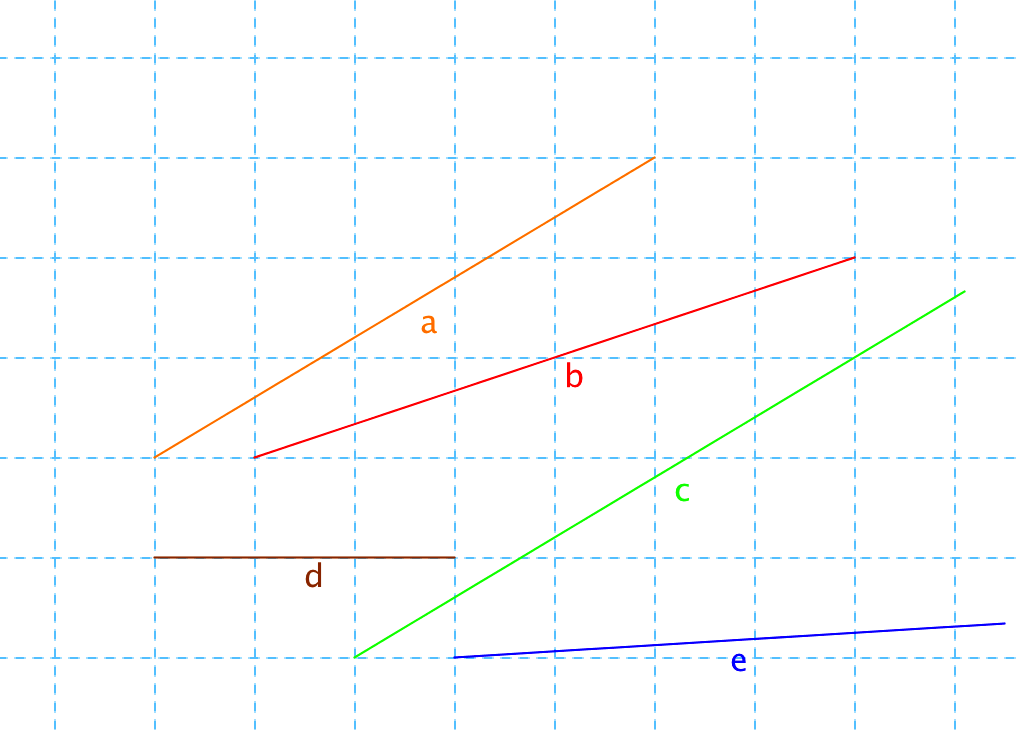 Следовательно, можно утверждать, что из всех изображенных на рисунке прямых, именно прямая \(\displaystyle c\) параллельна прямой \(\displaystyle a\): \(\displaystyle c \, || a\).
