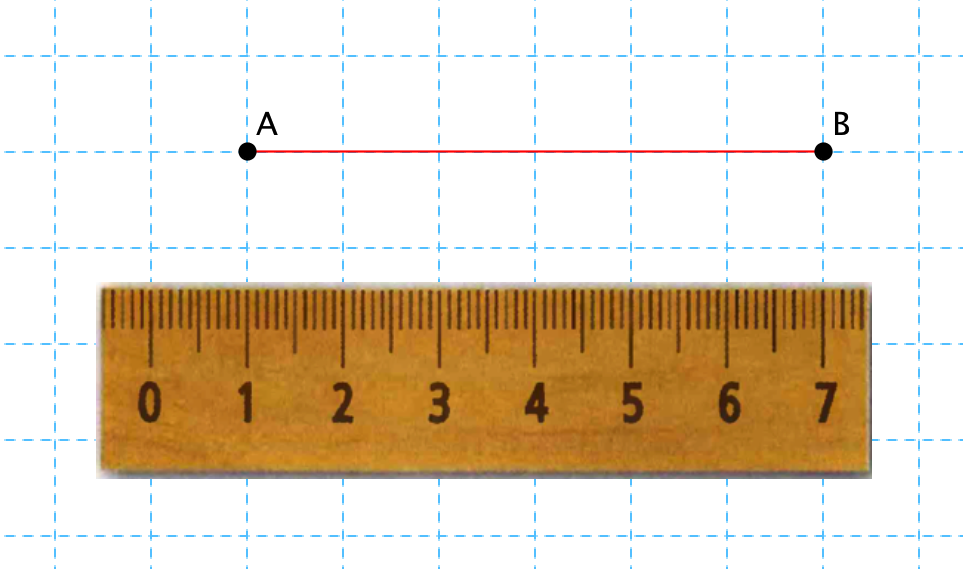 Отрезок \(\displaystyle AB\) равен \(\displaystyle 6\) клеткам, следовательно, его длина составляет \(\displaystyle AB=6\) см.