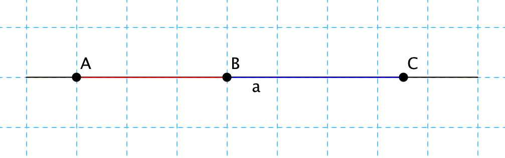 Изобразим на прямой \(\displaystyle a\) точки \(\displaystyle A\), \(\displaystyle B\) и \(\displaystyle C\), учитывая то, что точки \(\displaystyle B\) и \(\displaystyle C\) расположены по одну сторону (например, справа) от точки \(\displaystyle A\) (масштаб: \(\displaystyle 1\) клетка \(\displaystyle =2\) см):