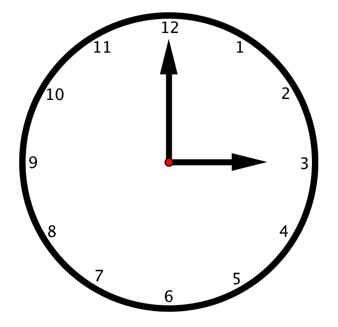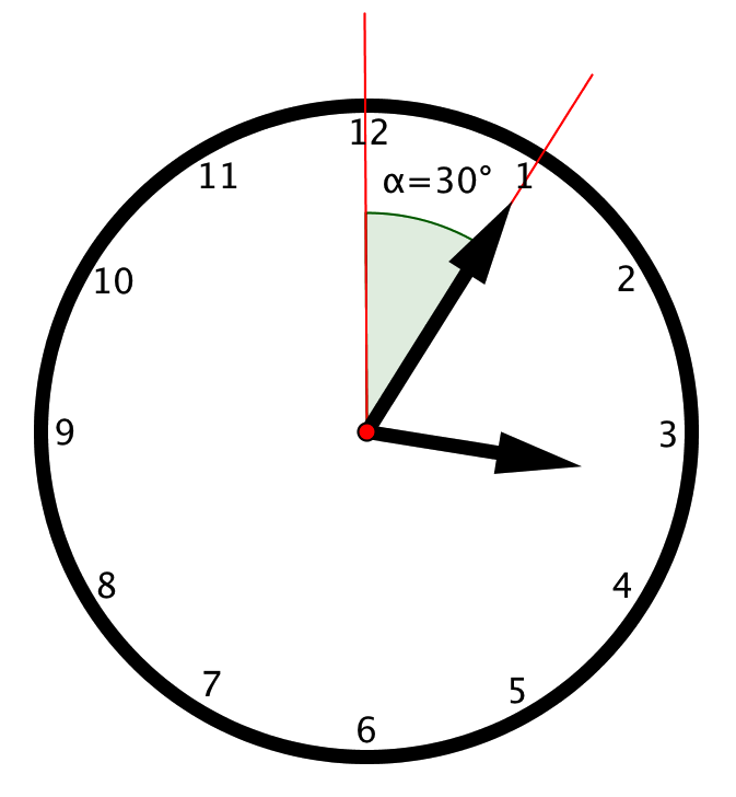 Пусть первоначально минутная стрелка была направлена вверх, что, например, соответствует времени \(\displaystyle 3{:}00\) часа: