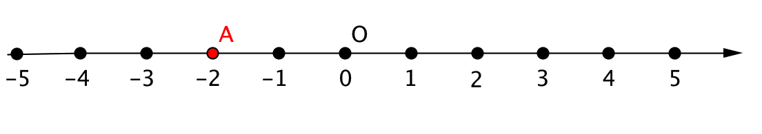 Если отложить от точки \(\displaystyle O(0)\) влево \(\displaystyle 2\) единичных отрезка, то получим точку \(\displaystyle A(-2)\):