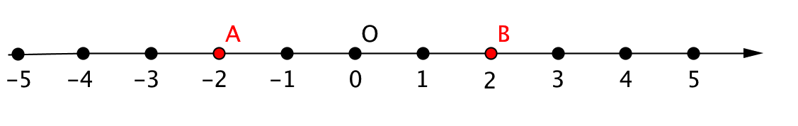 Значит, существуют только две точки \(\displaystyle A(-2)\) и \(\displaystyle B(2)\), находящиеся на расcтоянии \(\displaystyle 2\) от начала координат \(\displaystyle O(0)\):