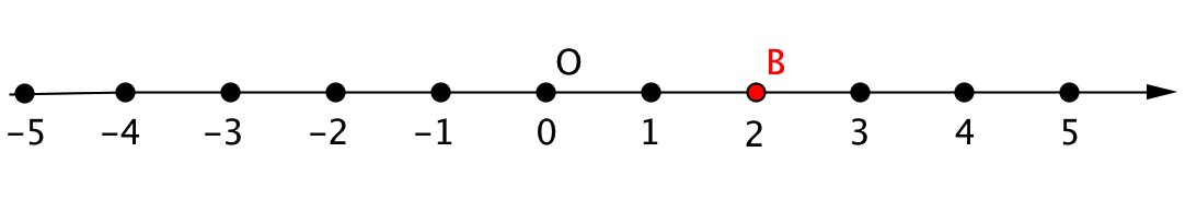 Если отложить от точки \(\displaystyle O(0)\) вправо \(\displaystyle 2\) единичных отрезка, то получим точку \(\displaystyle B(2)\):
