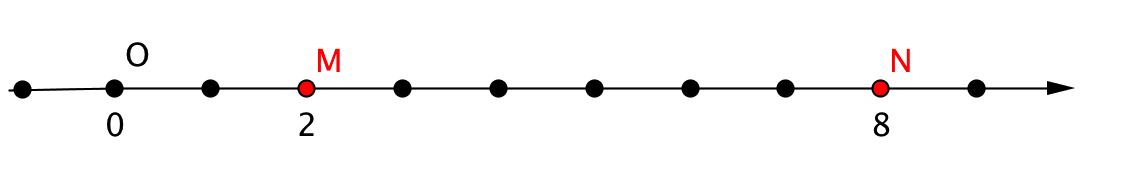 Изобразим на числовой прямой точки \(\displaystyle M(2)\) и \(\displaystyle N(8)\):
