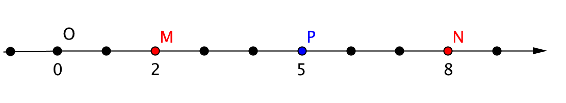 Это равенство означает, что расстояния от некоторой точки с координатой \(\displaystyle p\) до точек \(\displaystyle M(2)\) и \(\displaystyle N(8)\) равны (то есть точка с координатой \(\displaystyle p\) равноудалена от точек \(\displaystyle M(2)\) и \(\displaystyle N(8)\)).