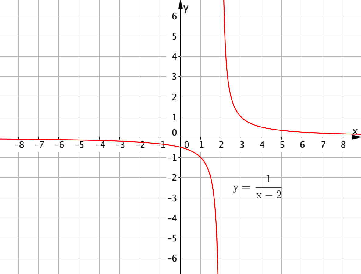 \(\displaystyle {\bf y=\frac{1}{x-2}}\)
