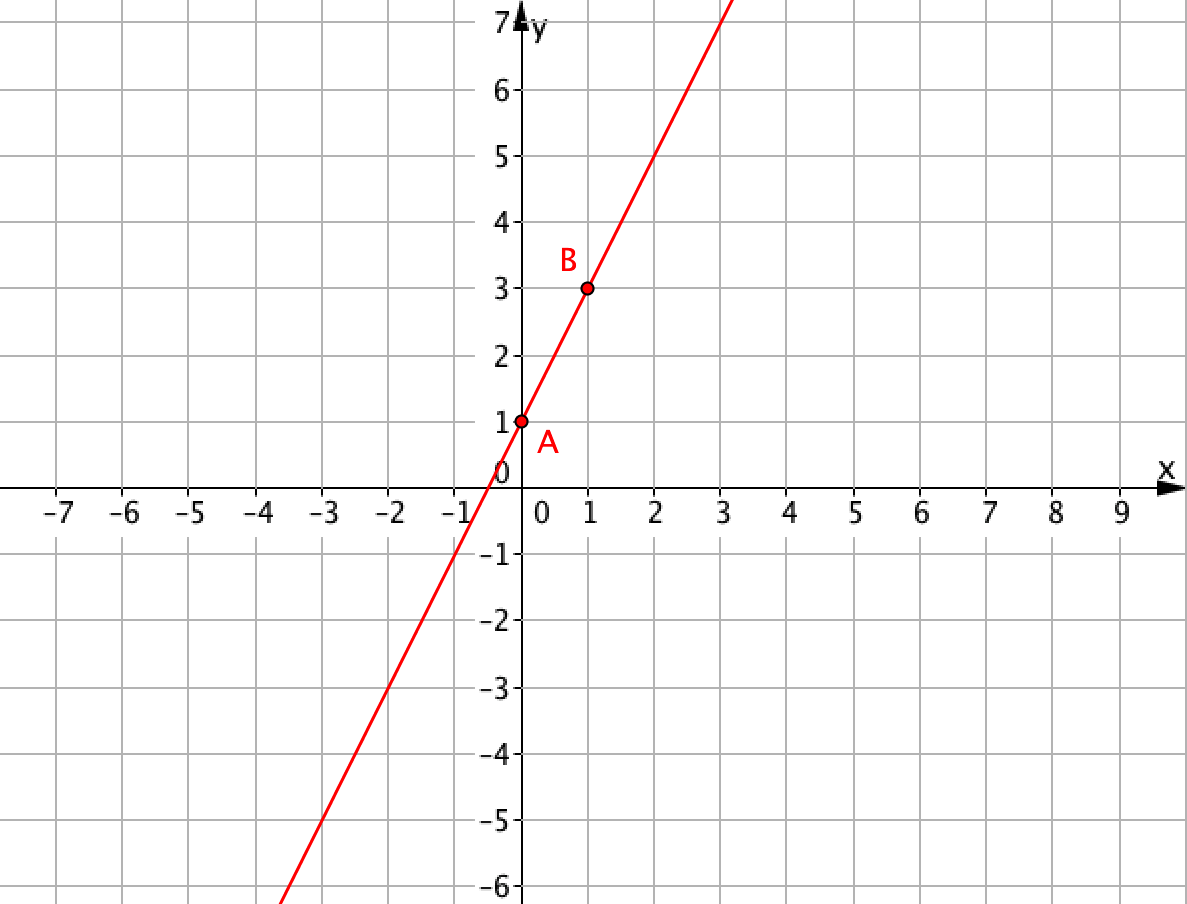 Например, возьмем точку \(\displaystyle A(0;\,1)\) и \(\displaystyle B(1;\,3){\small .}\) Проверим, удовлетворяют ли они уравнению \(\displaystyle y=2x+1{\small .}\)